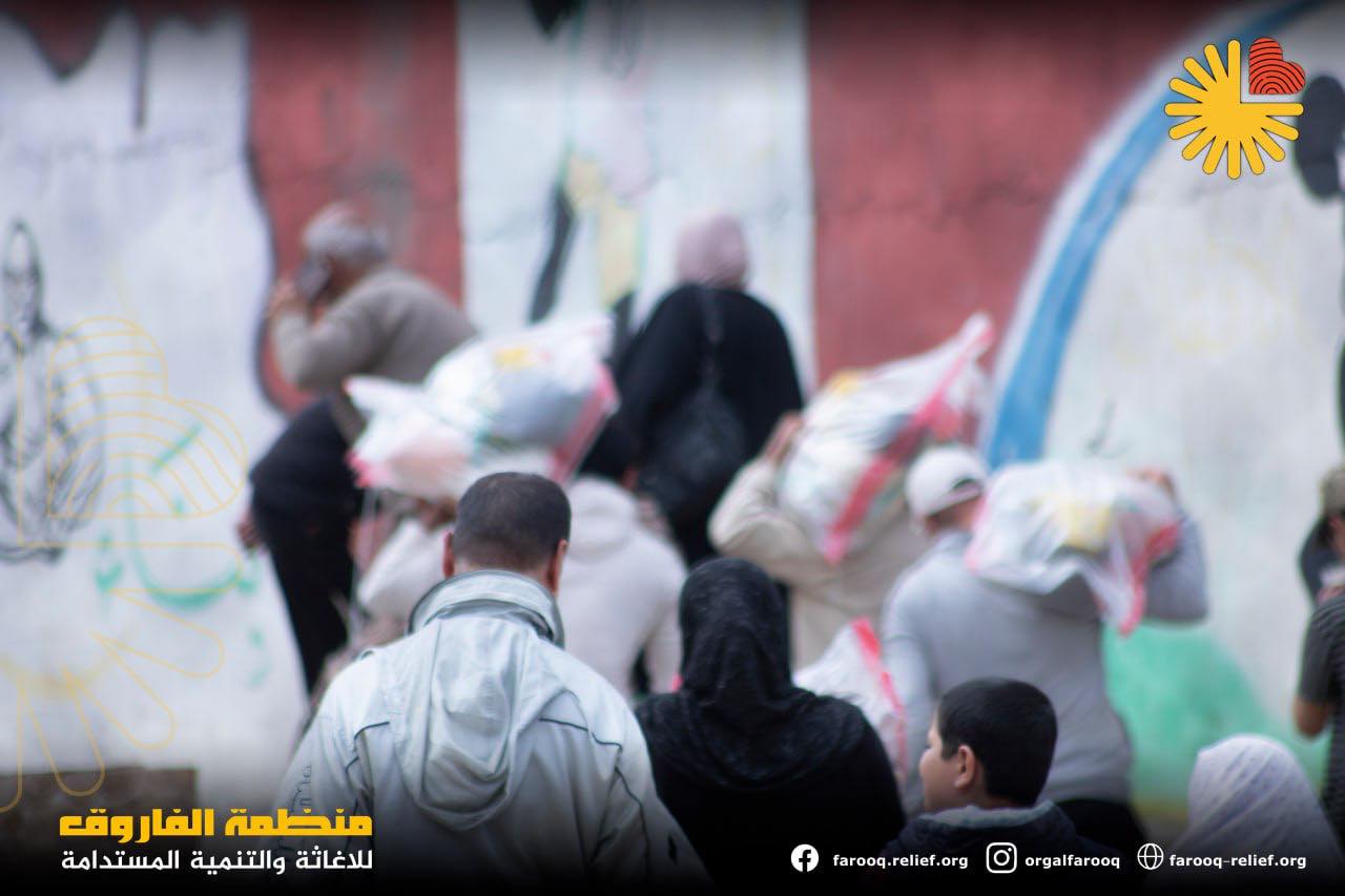 حيث قامت منظمة الفاروق بتوزيع اكثر من ١٥٠ سلة غذائية