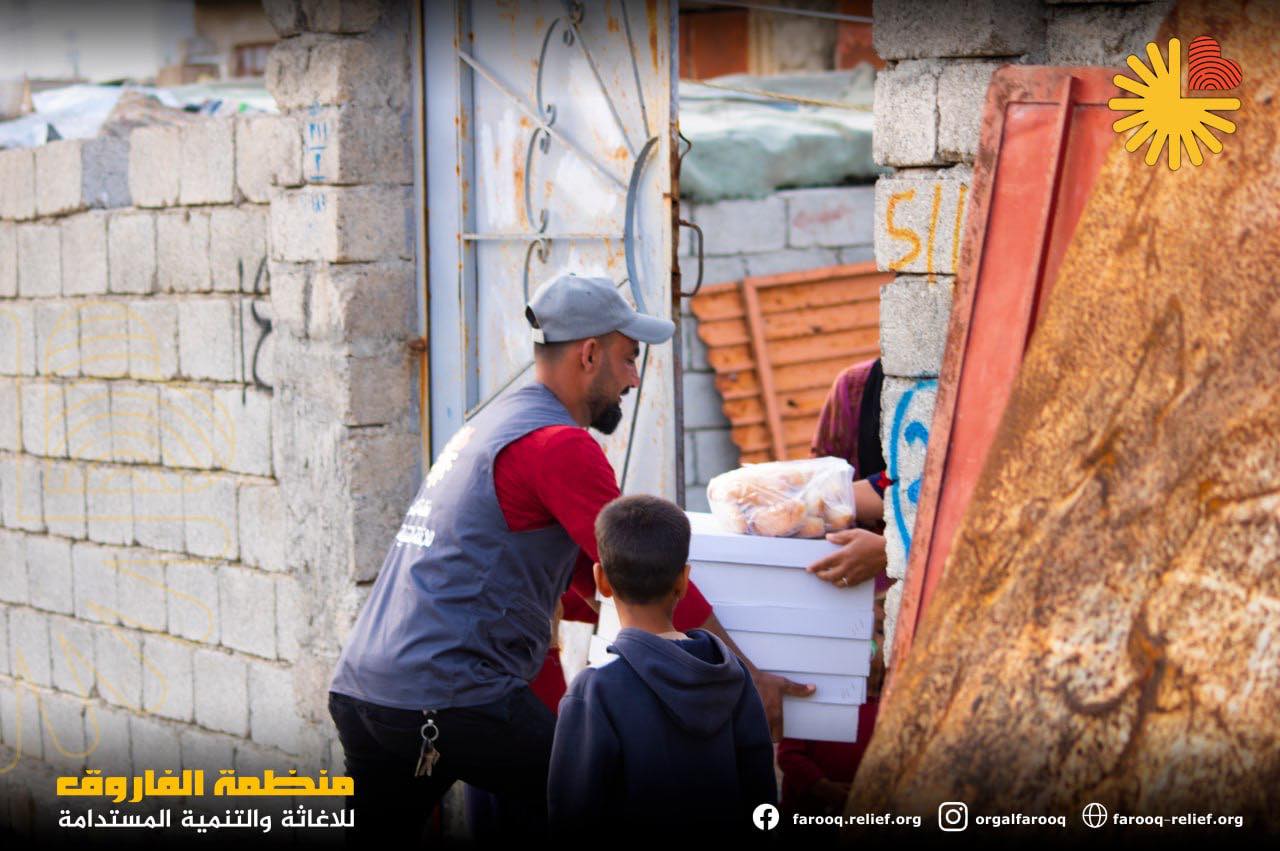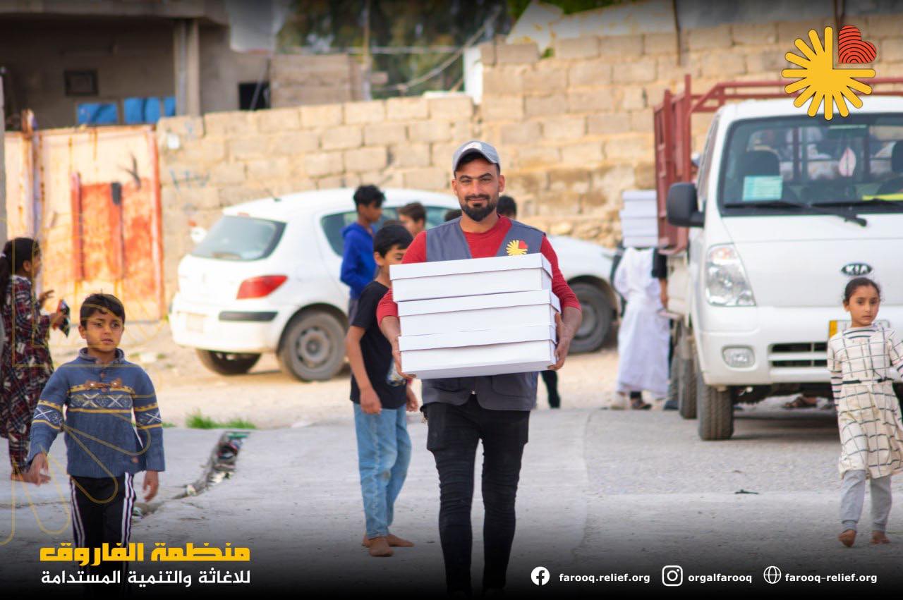 توزيع السلات الغذائية وزعت منظمة الفاروق للإغاثة والتنمية المستدامة ما يقارب 5000 سلة غذائ