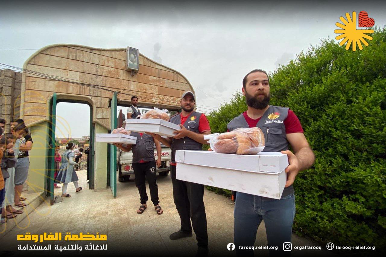توزيع السلات الغذائية وزعت منظمة الفاروق للإغاثة والتنمية المستدامة ما يقارب 5000 سلة غذائ