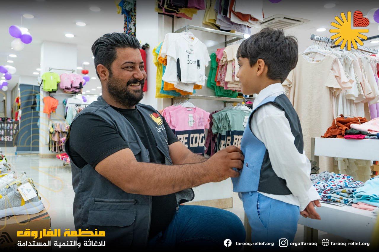 اكملت اليوم منظمة الفاروق تجهيز اكثر من ٢٠٠ طفل من العوائل المتعففة بملابس كاملة للعيد