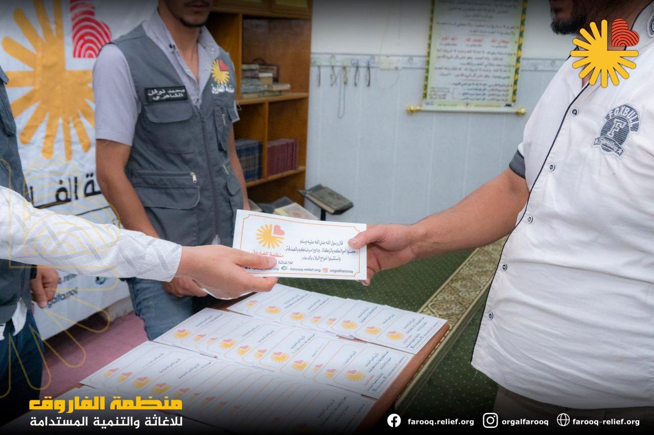 توزيع السلات الغذائية وزعت منظمة الفاروق للإغاثة والتنمية المستدامة ما يقارب 5000 سلة غذائ