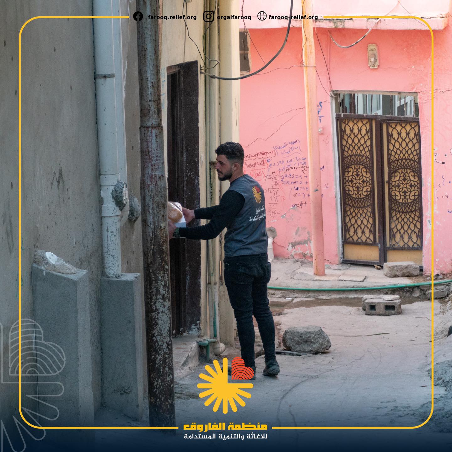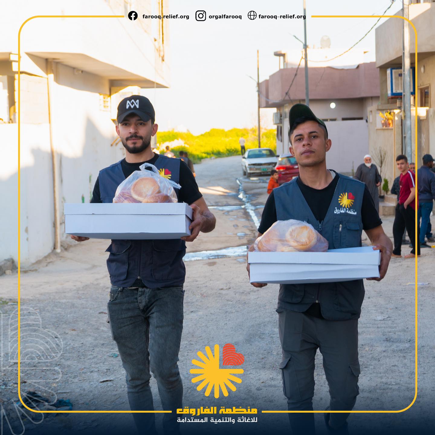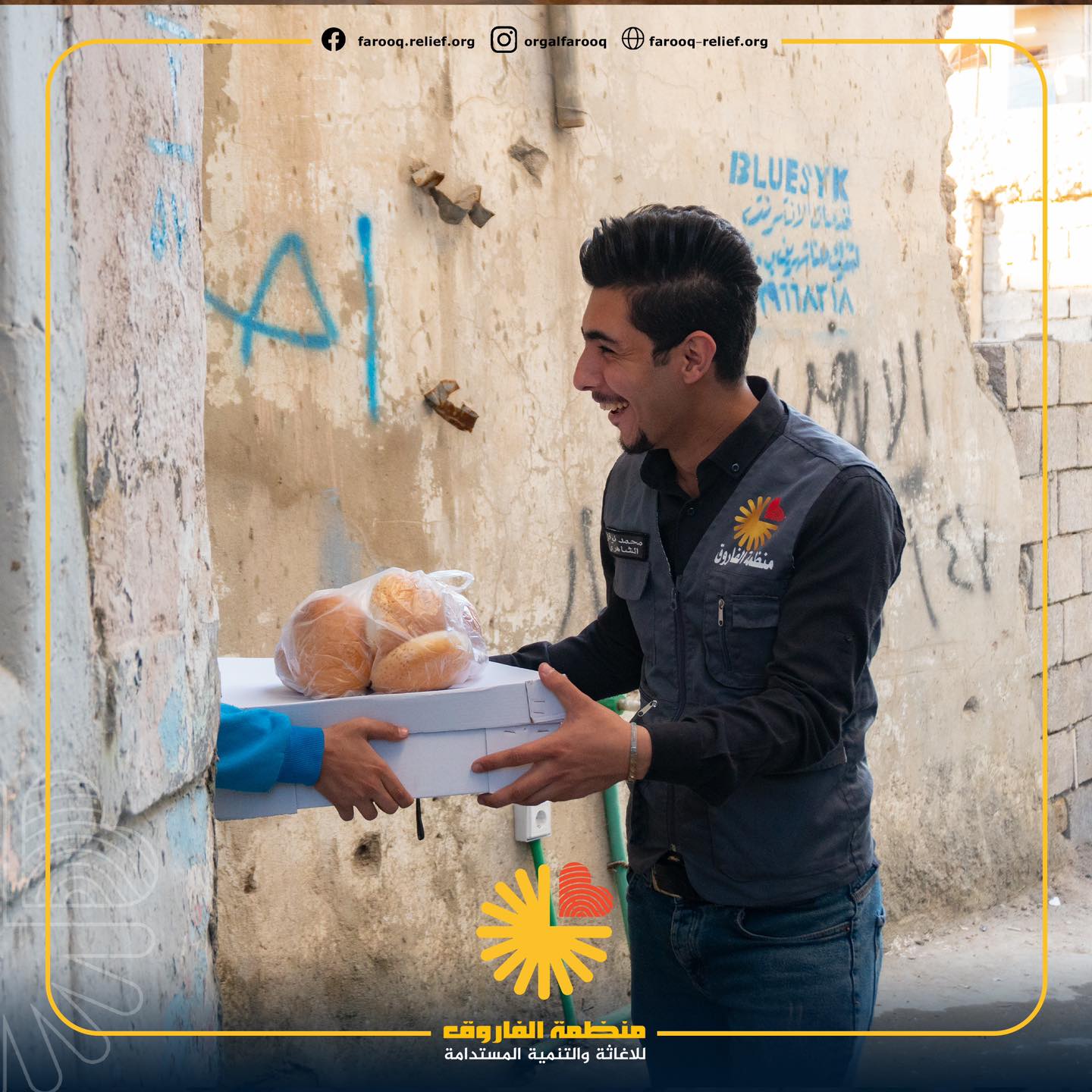 توزيع السلات الغذائية وزعت منظمة الفاروق للإغاثة والتنمية المستدامة ما يقارب 5000 سلة غذائ
