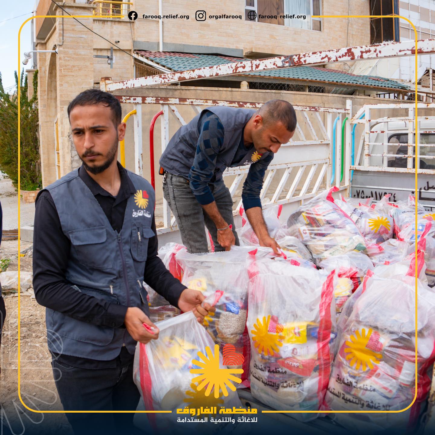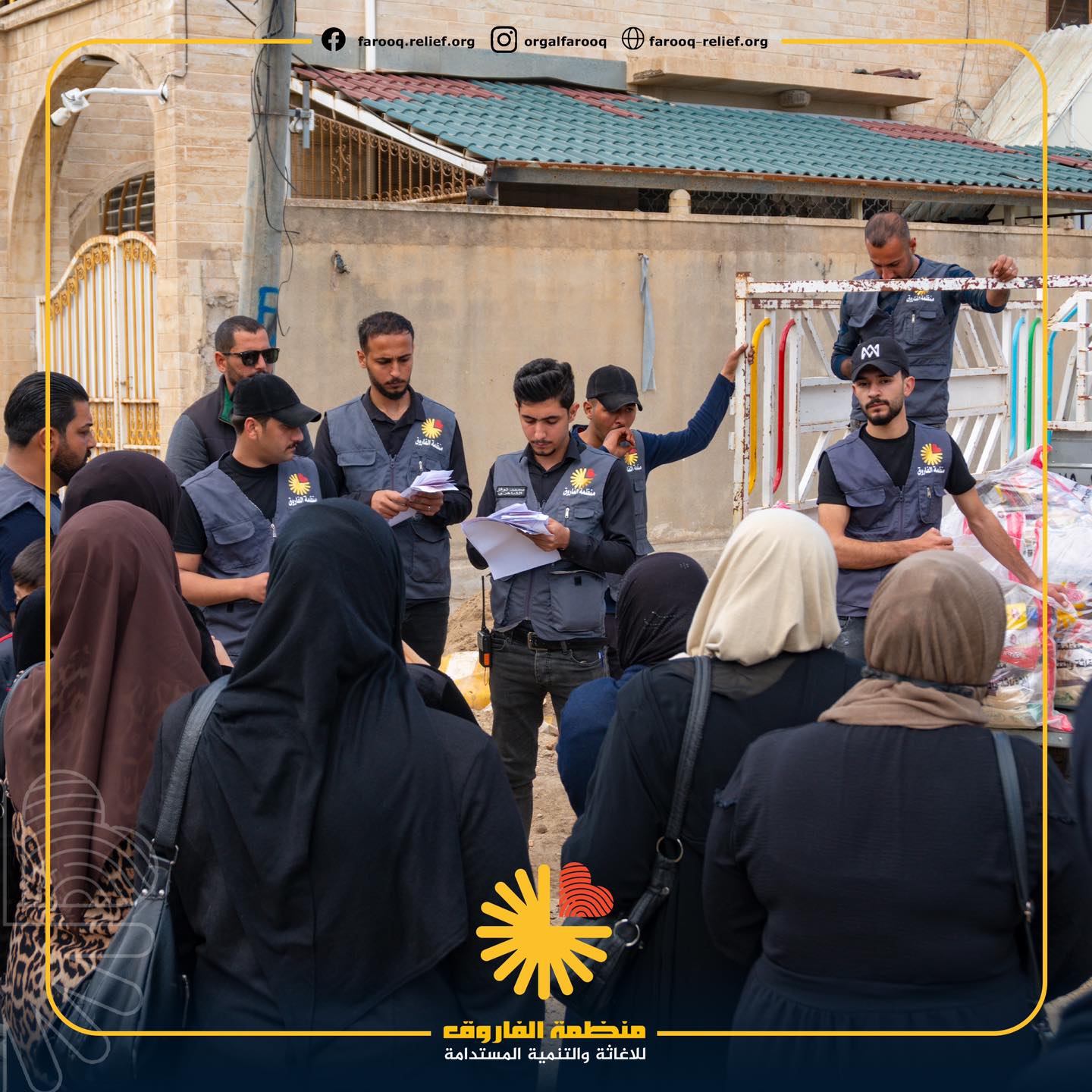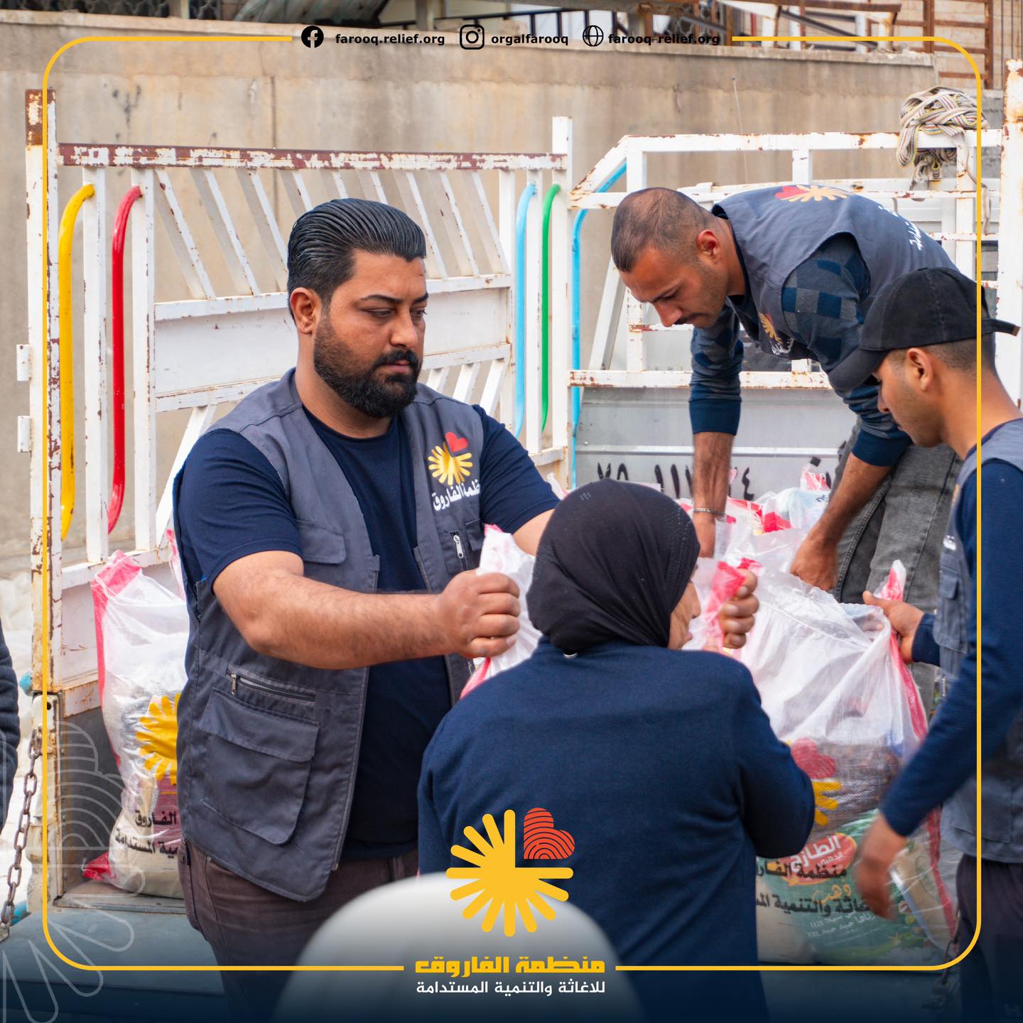 اليوم السابع لنشاطات منظمة الفاروق الرمضانية جانب من توزيع ٥٠ سلة غذائية ل ٥٠ عائلة متعففة ايسر الموصل