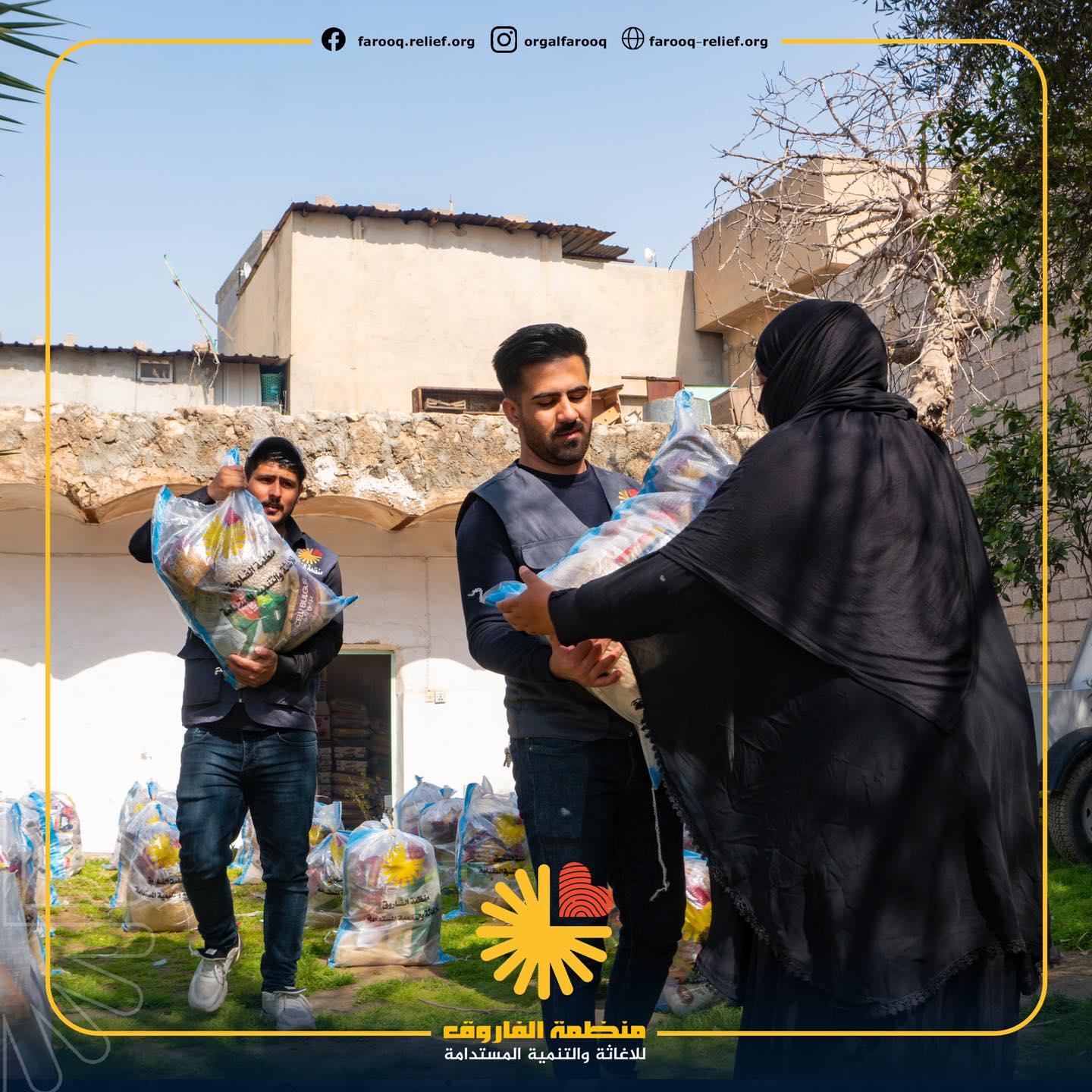 توزيع السلات الغذائية وزعت منظمة الفاروق للإغاثة والتنمية المستدامة ما يقارب 5000 سلة غذائ