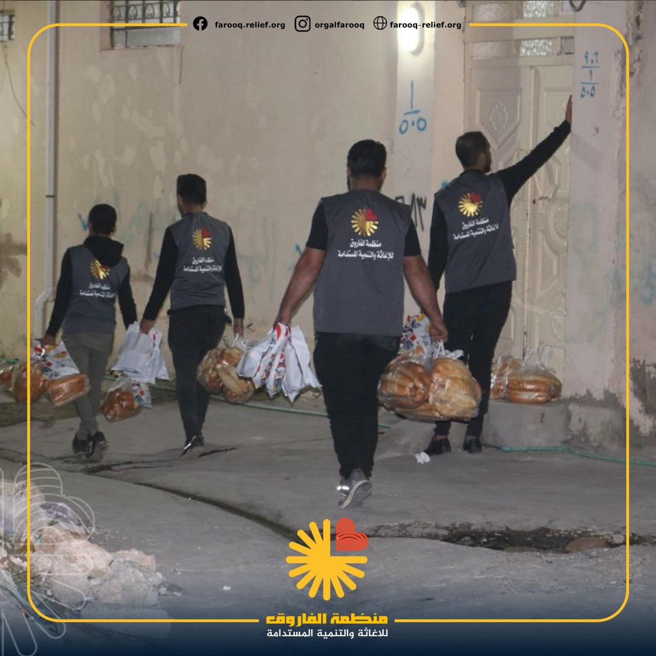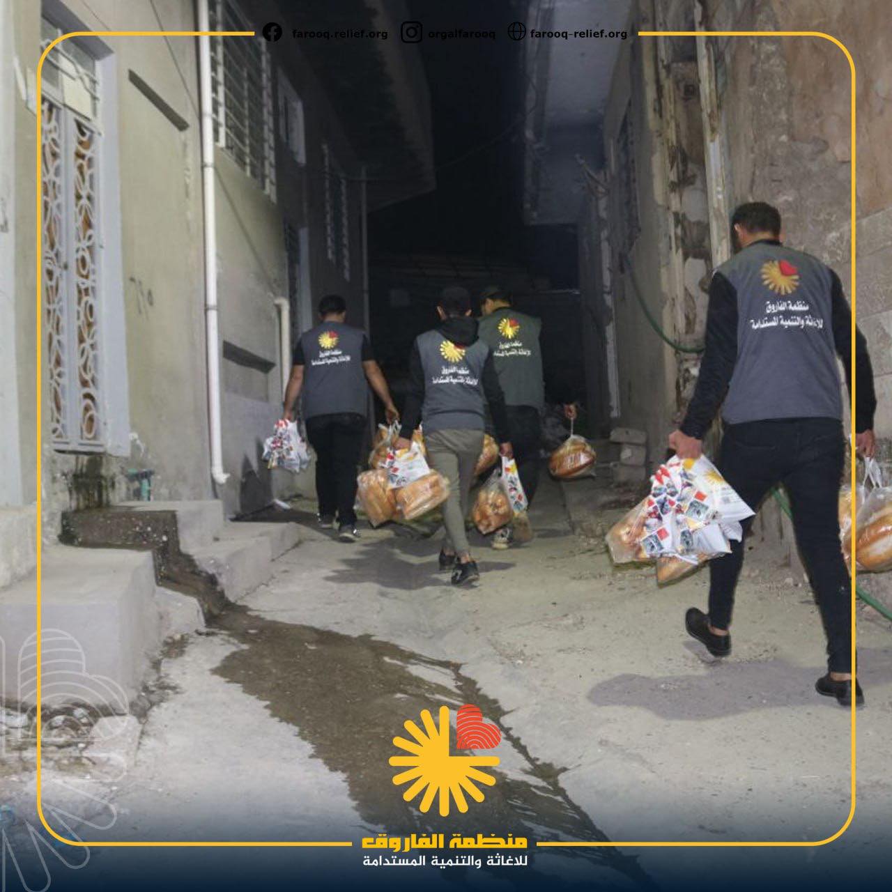 ابطال منظمة الفاروق يتجولون في ازقة عوجات الموصل ليلاً لتوزيع وجبات السحور للعوائل المتعففة