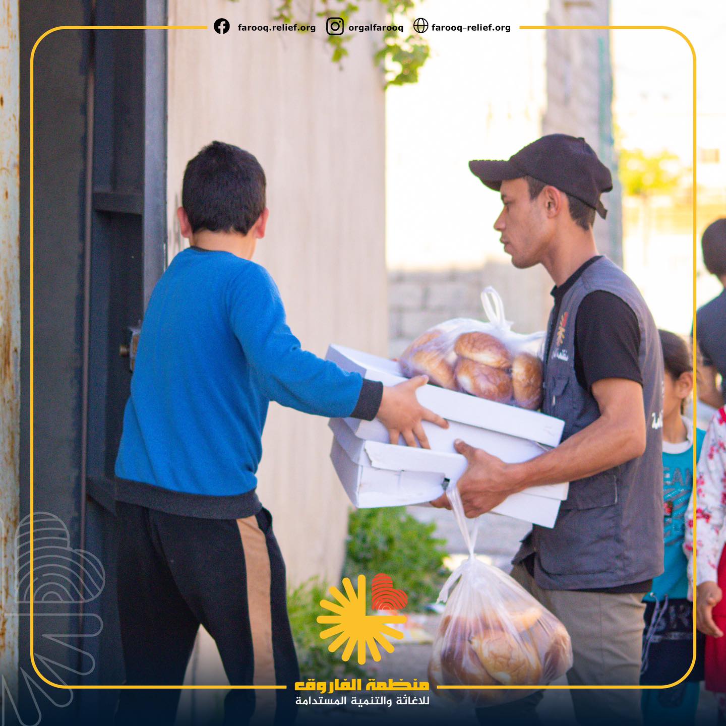 توزيع السلات الغذائية وزعت منظمة الفاروق للإغاثة والتنمية المستدامة ما يقارب 5000 سلة غذائ