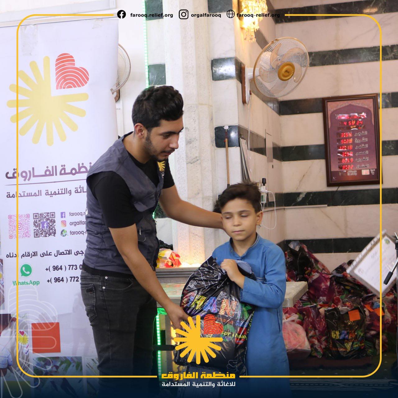 توزيع السلات الغذائية وزعت منظمة الفاروق للإغاثة والتنمية المستدامة ما يقارب 5000 سلة غذائ