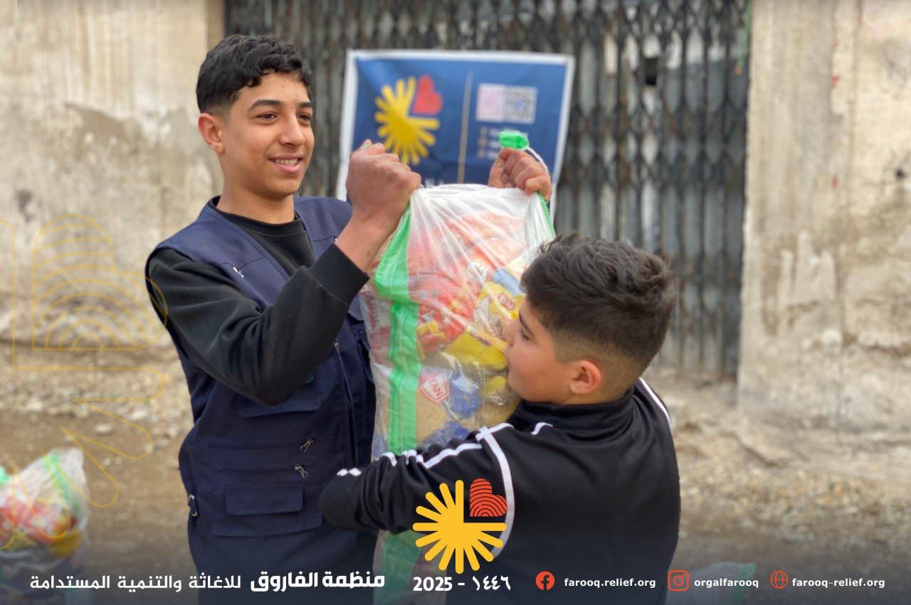 توزيع السلات الغذائية وزعت منظمة الفاروق للإغاثة والتنمية المستدامة ما يقارب 5000 سلة غذائ