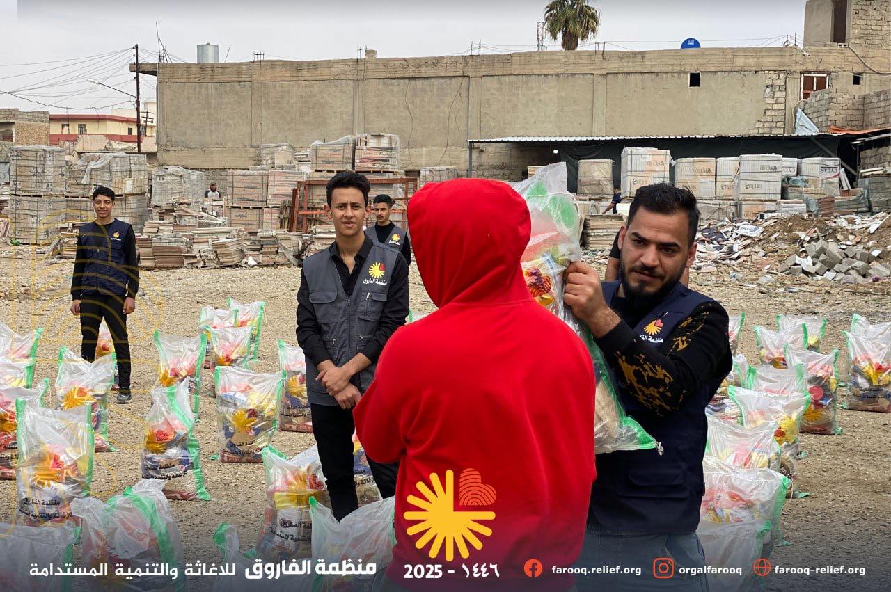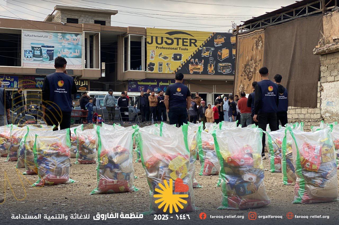 حيث قامت منظمة الفاروق بتوزيع ٨٧ سلة غذائية على عوائلنا في منطقة النبي شيت ايمن الموصل