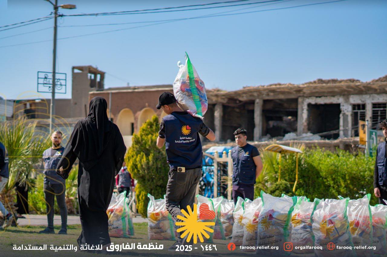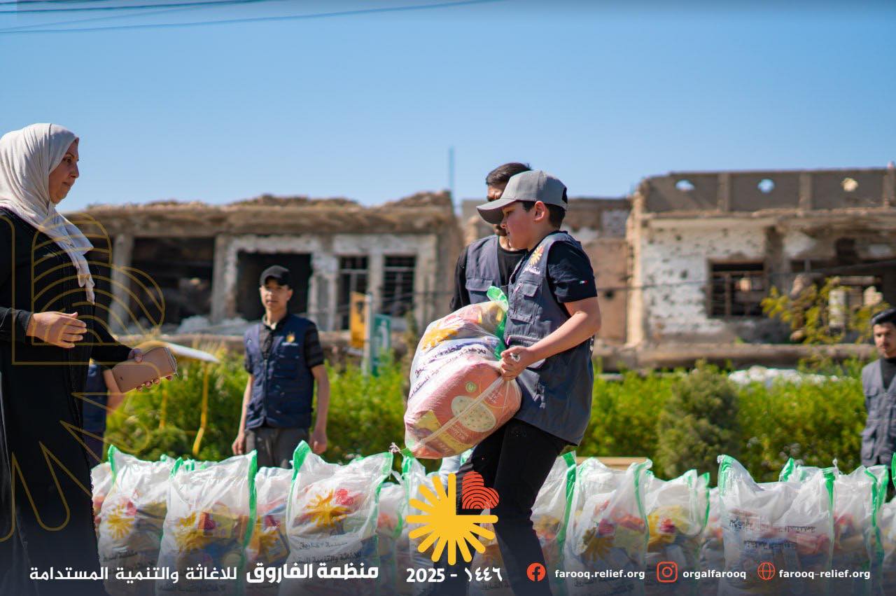 في اليوم الرابع عشر من شهر رمضان المبارك، تستمر منظمة الفاروق في جهودها الإنسانية لدعم العوائل المتعففة. فقد قمنا اليوم بتوزيع اكثر من 200 سلة غذائية على الأسر المحتاجة في أيمن الموصل، سعيًا منا لتوفير احتياجاتهم الأساسية خلال هذا الشهر الكريم