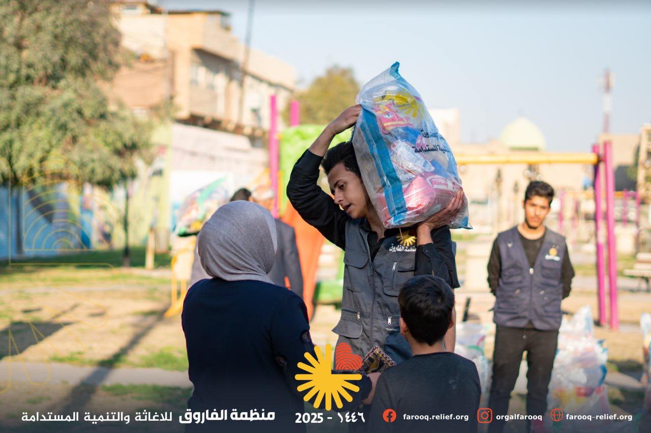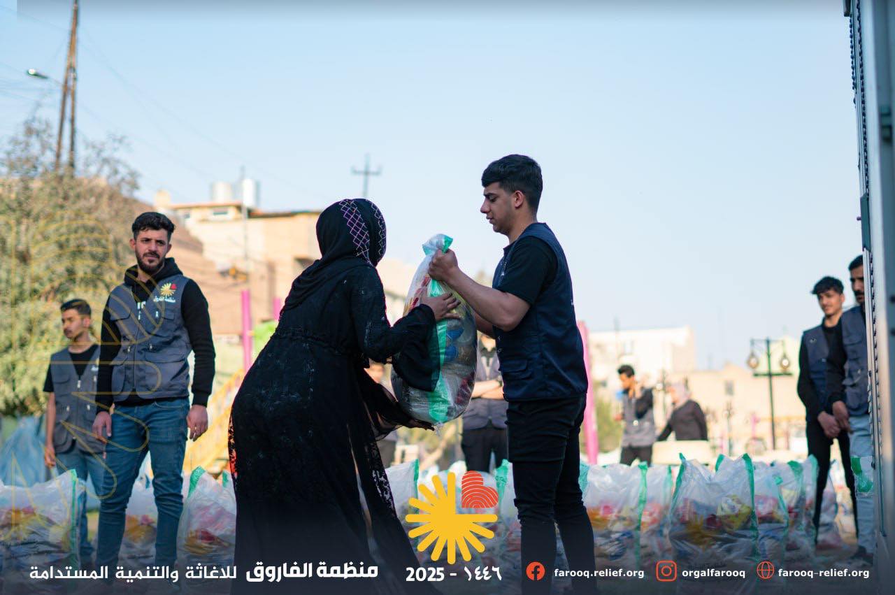 توزيع السلات الغذائية وزعت منظمة الفاروق للإغاثة والتنمية المستدامة ما يقارب 5000 سلة غذائ
