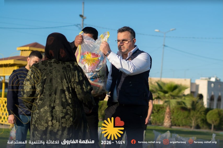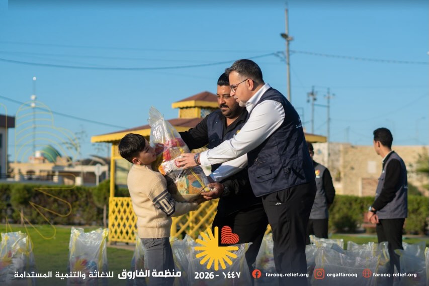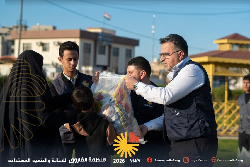 بحضور رئيس منظمة الفاروق الدكتور علي فاروق عبدالقادر، قامت منظمة الفاروق للإغاثة والتنمية المستدامة بتوزيع أكثر من 100 سلة غذائية على العوائل المتعففة.