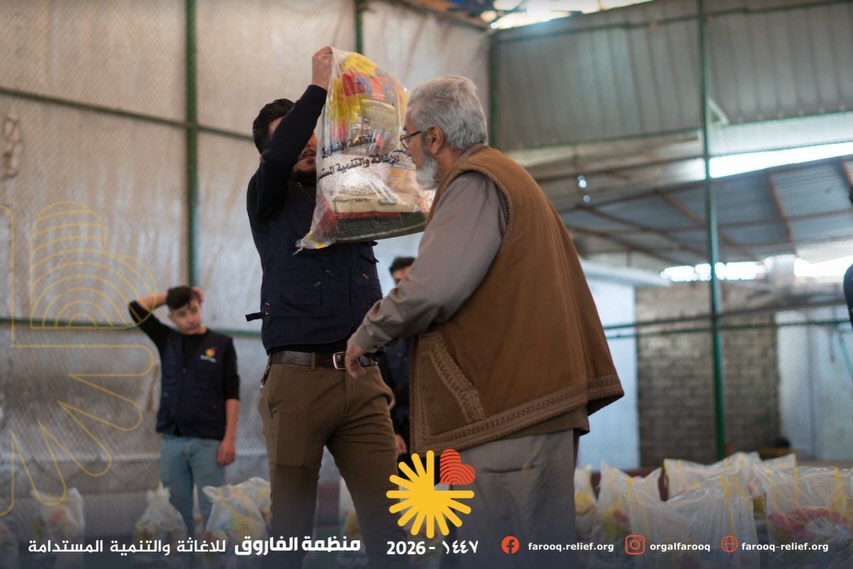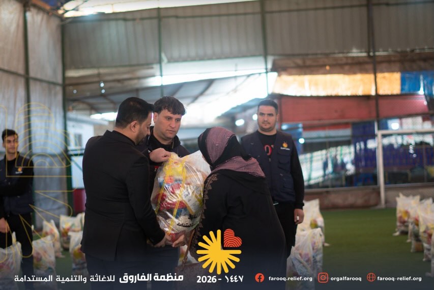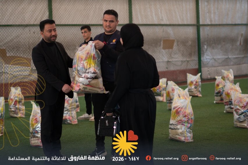 بتاريخ ٢٠٢٦/٣/٥، وبحضور مدير قسم المنظمات والعمل الإنساني في ديوان محافظة نينوى الأستاذ مشاري الكورز ، نفذت منظمة الفاروق مبادرة إنسانية تمثلت بتوزيع سلات غذائية على عدد من العوائل المتعففة في المناطق التي شهدت نسب عودة للنازحين في الجانب الأيمن من مدينة الموصل.