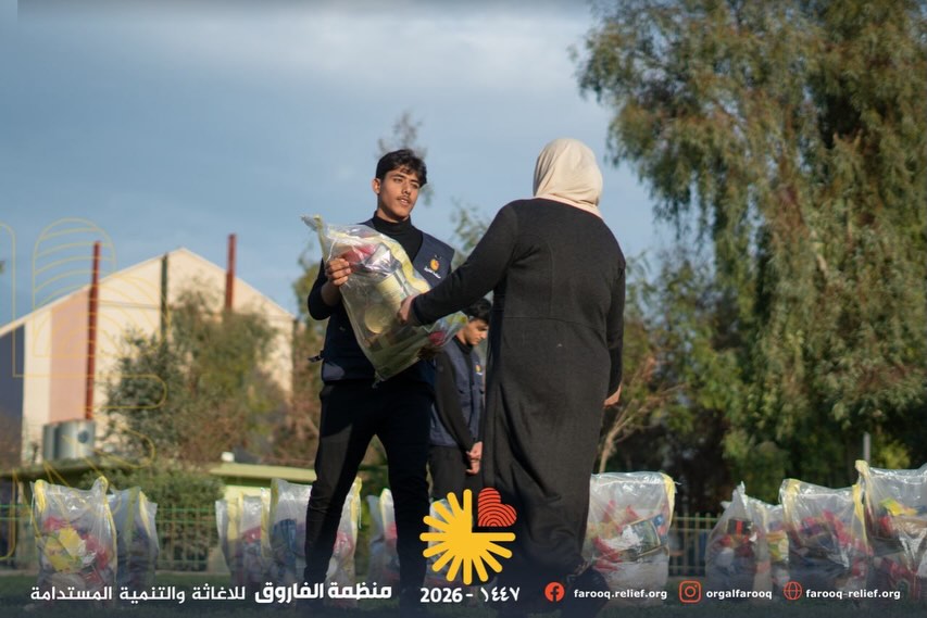 توزيع السلات الغذائية وزعت منظمة الفاروق للإغاثة والتنمية المستدامة ما يقارب 5000 سلة غذائ