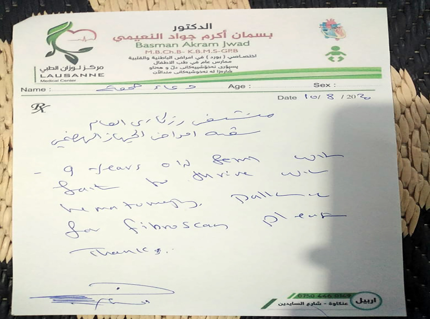 تم التكفل بعلاج الطفله السوريه (دعاء جمعه) النازحه في إحدى المخيمات والتي تشكو من ضمور في الدماغ , ولازالت متابعة الحاله مستمره. ...