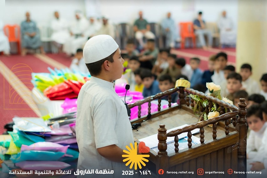 منظمة الفاروق للإغاثة والتنمية المستدامة تختتم حملتها في رعاية حفلات التخرج للدورات الصيفية لتحفيظ القرآن الكريم والسنة النبوية، وذلك في جامع الصواف ايمن مدينة الموصل. تخلل الحفل توزيع الهدايا على ...