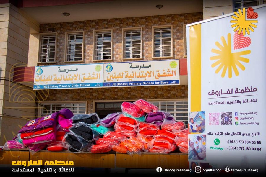 منظمة الفاروق للإغاثة والتنمية المستدامة وبالتنسيق مع مديرية تربية نينوى مستمرة في مبادرتها في دعم الطلبة الايتام والمتعففين في مدارس مدينة الموصل وشملت المبادرة تجهيز 42 طالبة بكسوة وملابس شتو...