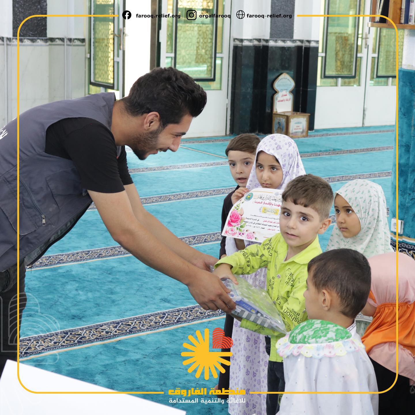 بفضل الله، وبفضل عطائكم… اختتمت منظمة الفاروق اليوم حملة “كسوة العيد” التي استهدفت تجهيز ٥٠٠ طفل بملابس العيد شكرًا لكل من ساهم بهذا العمل مشاهدة الالبوم الكامل ...