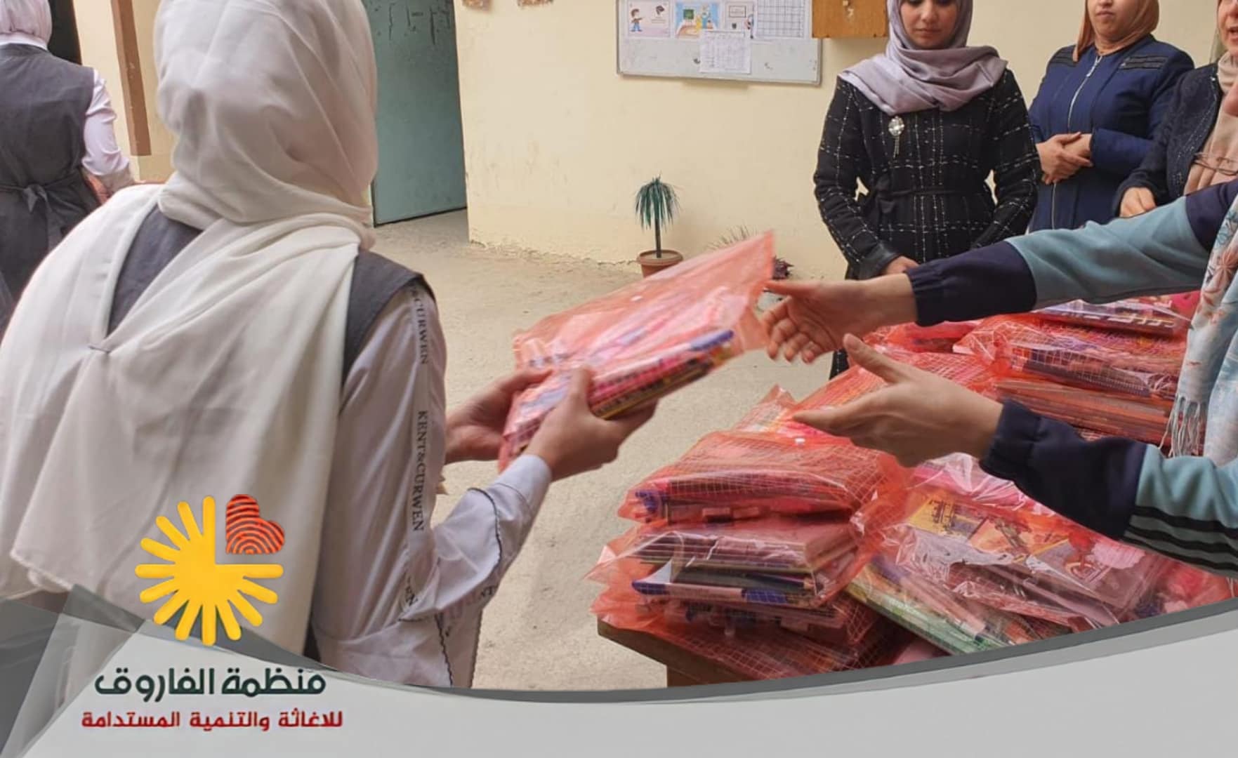 بادرة منظمة الفاروق للإغاثة وللتنمية المستدامة بتوزيع قرطاسية مدرسية لطلاب وطالبات مدرسة صلاح الدين الايوبي للدراسات الاسلامية وتزويد ادارة المدرسة بقرطاسية ومستلزمات ادارية ...