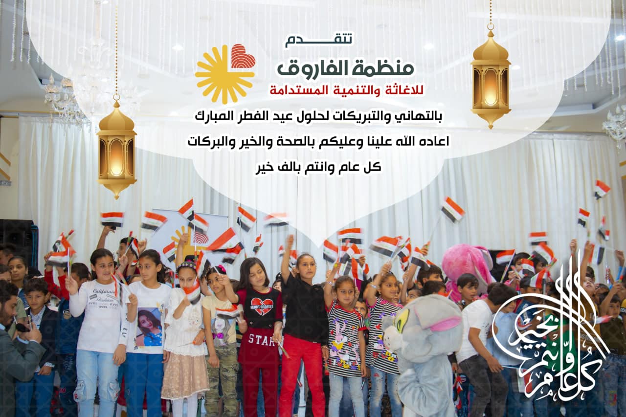 تهنئكم منظمة الفاروق للإغاثة والتنمية المستدامة بقدوم عيد الفطر المبارك وكل عام والامة الاسلامية والعالم اجمع بالف خير ...